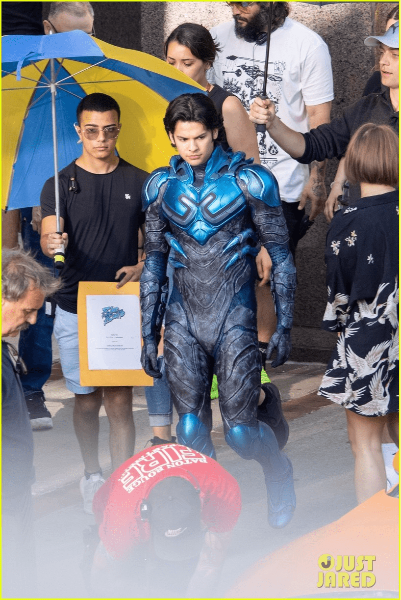 Depois que a DC deu o vislumbre de uma arte conceitual do Besouro Azul, que será vivido por Xolo Maridueña, imagens dos bastidores mostraram o astro com o traje completo. Confira: