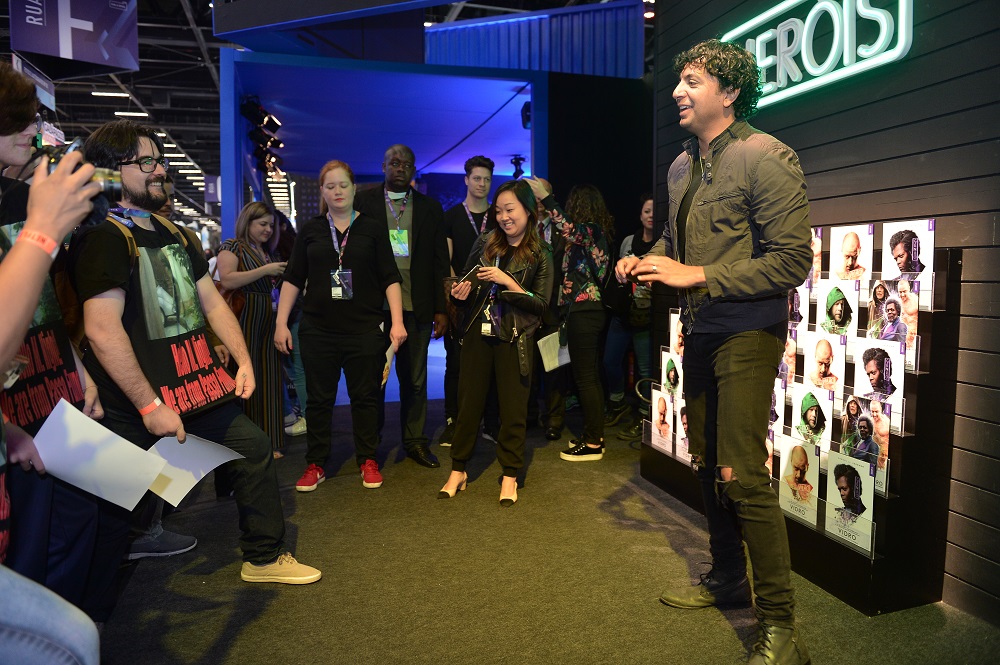 No último dia 8 de dezembro, o penúltimo de CCXP 2018, o cineasta M. Night Shyamalan participou do painel de Vidro (Glass) e, logo após isso, visitou uma área dedicada ao filme no estande da Disney. Confira algumas imagens na galeria: