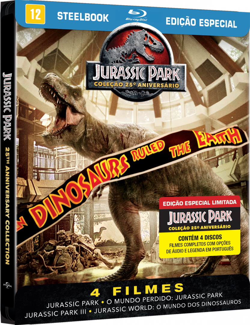 O aniversário é do filme JURASSIC PARK, mas quem ganha presente são os fãs da franquia! A Universal Pictures Home Entertainment preparou uma surpresa especial para comemorar os 25 anos desde o lançamento de Jurassic Park – O Parque dos Dinossauros, em 1993. A novidade é a Coleção Jurassic Park em Steelbook, no formato Blu-ray que conta com os filmes JURASSIC PARK – O PARQUE DOS DINOSSAUROS, O MUNDO PERDIDO: JURASSIC PARK, JURASSIC PARK III e JURASSIC WORLD: O MUNDO DOS DINOSSAUROS. Em parceria com a Iron Studios, os fãs encontrarão um flyer exclusivo com os produtos da série dentro do Steelbook. Além disso, a aclamada franquia criada por Steven Spielberg também pode ser encontrada em Blu-ray e DVD nas melhores lojas! Prepare-se!