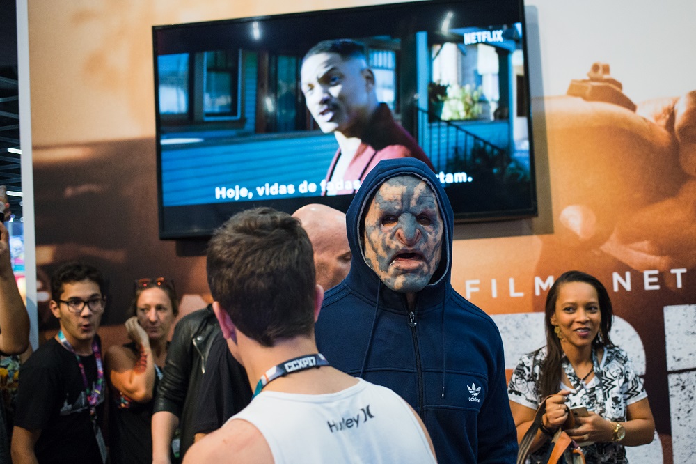 Indo em direção ao painel, Will Smith aventurou-se na CCXP ao andar pela convenção vestindo um disfarce de Orc, como os personagens do filme da Netflix. Depois de caminhar ao redor do estande de Bright e reunir uma multidão, Will Smith finalmente revelou quem estava por trás da máscara. Confira as imagens na galeria: