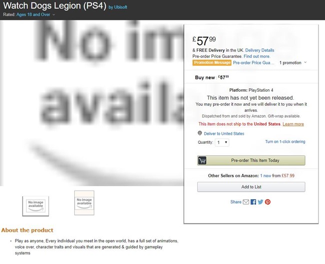 Duas imagens que revelam qual seria o próximo jogo da série de Watch Dogs foram reveladas. A Amazon UK vazou o nome com a ficha do terceiro jogo que se chamará Legion. Confira as imagens abaixo: