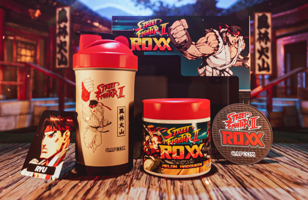 O segundo produto da coleção especial Street Fighter II da Roxx Energy já está disponível e o personagem homenageado da vez é o Ryu. Composto por uma coqueteleira exclusiva, um action card colecionável, um porta copos emborrachado e um pote contendo 40 doses do energético sabor Melon Hadouken o kit já está a venda no site da Roxx em edição limitada com apenas 500 unidades colecionáveis.