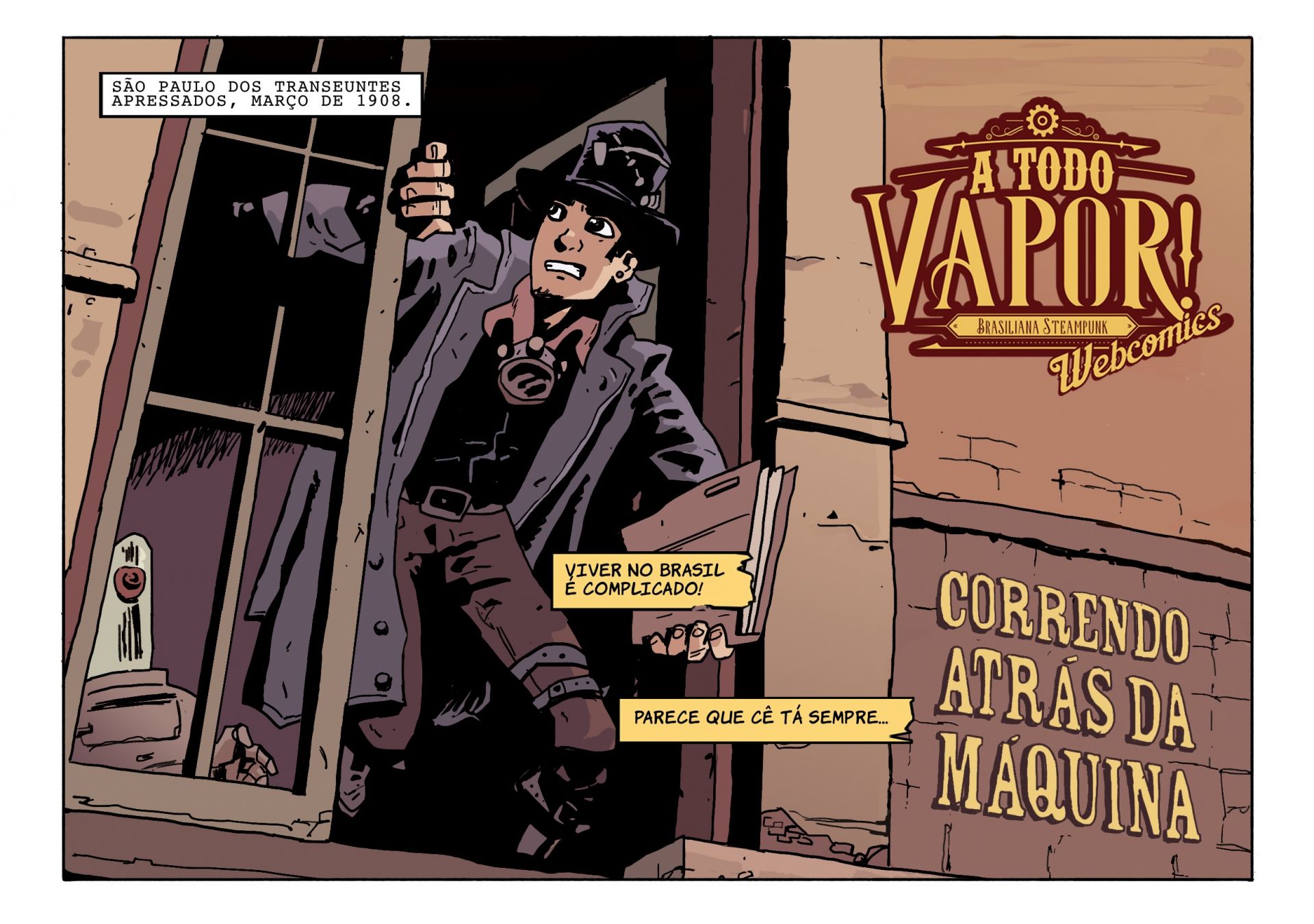 Com roteiro de Enéias Tavares, arte de Fred Rubim e capas de Vitor Berserk, A Todo Vapor! Webcomics chegará em sua tela com aventuras inéditas em um Brasil retrofuturista e insólito: Afinal, para se viver nesse país, só sendo Super-Herói mesmo!