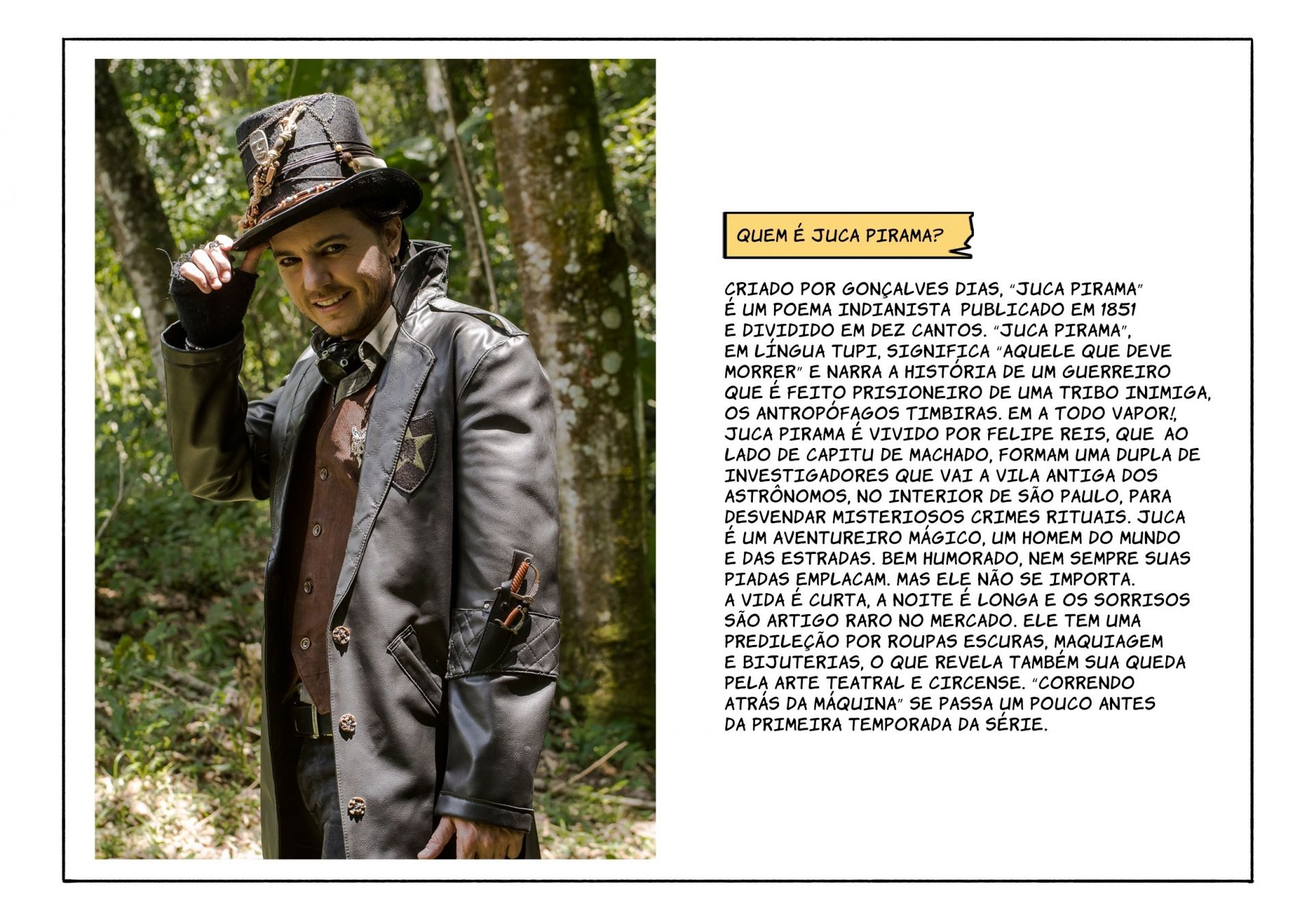 Com estreia prevista para 2019, a série ganha o seu primeiro lançamento oficial na forma de webcomics publicadas semanalmente no CosmoNerd. São histórias curtas e gratuitas protagonizadas por Juca Pirama, Capitu, Dr. Benignus, Vitória Acauã e outros heróis e heroínas que saltaram das páginas da literatura brasileira em releituras steampunk. A primeira delas, Protagonizada por Juca Pirama e intitulada “Correndo Atrás da Máquina” pode ser conferida aqui: