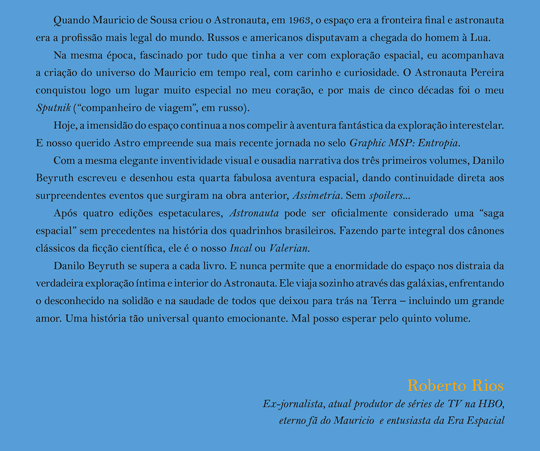 A editora Panini Comics lançará em dezembro deste ano, Astronauta – Entropia, a 21ª Graphic MSP sendo a edição de número quatro estrelada pelo Astronauta e o editor da Mauricio de Sousa Produções, Sidney Gusman, revelou as primeiras imagens da edição nas redes sociais.