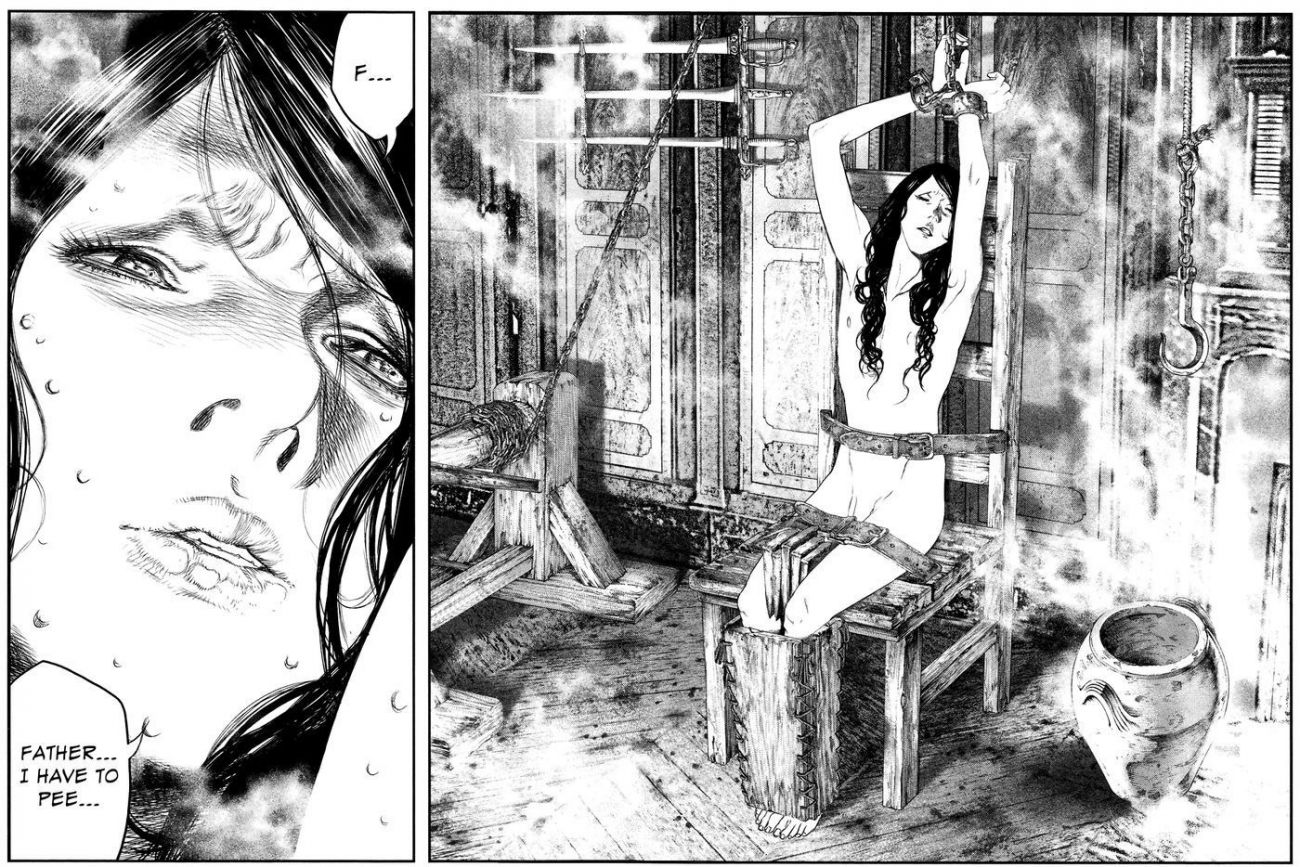 Falando em tortura, morte, Innocent é repleto de notas sobre pontos específicos de tortura, decapitação, como proceder para infligir dor e como essa dor atinge um ponto específico do corpo humano, trazendo ainda mais realidade a narrativa do quadrinho.