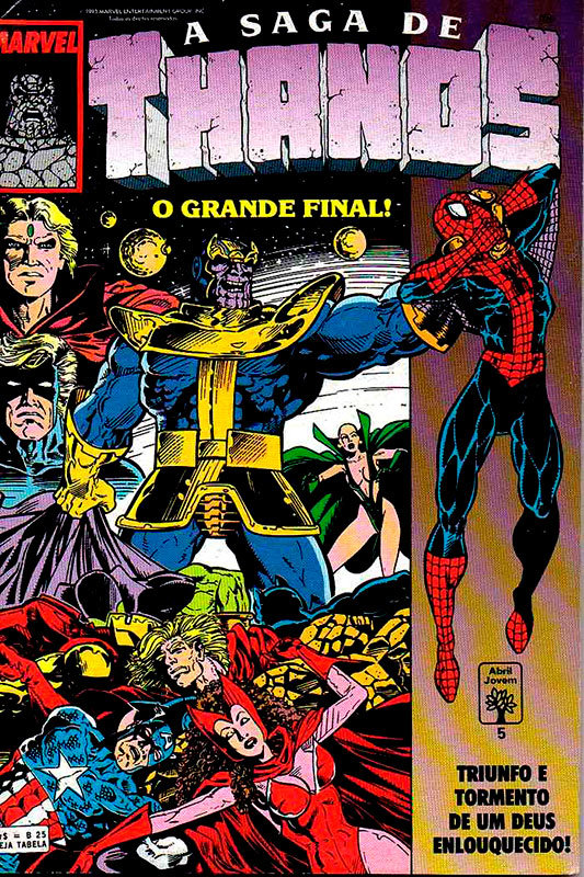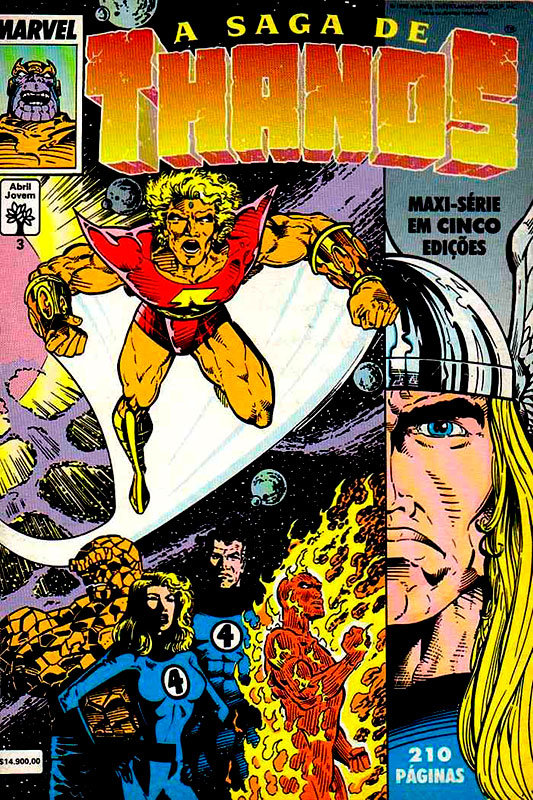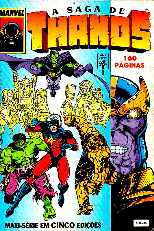 A Editora Abril, que detinha o direito de publicação dos personagens da Marvel, fez um copilado contento várias histórias do personagem e intitulou de a Saga de Thanos, agrupando assim vários historias em uma maxissérie em 5 edições.