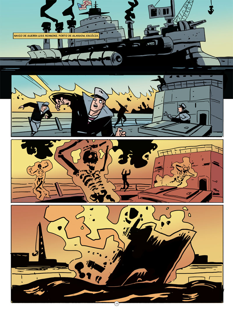 Como sempre sou recordado pelo amigo Rildon Oliver, as belas ilustrações de Fred Rubim lembram muito um cara que também adora usar referências lovecraftianas em sua histórias: Mike Mignola, o criador do Hellboy. Nesse sentido, Montanhas da Loucura até se assemelha um pouco a Sementes da Destruição (primeira história do Hellboy), tendo como diferença menos simbolismos e o uso da roupagem steampunk.
