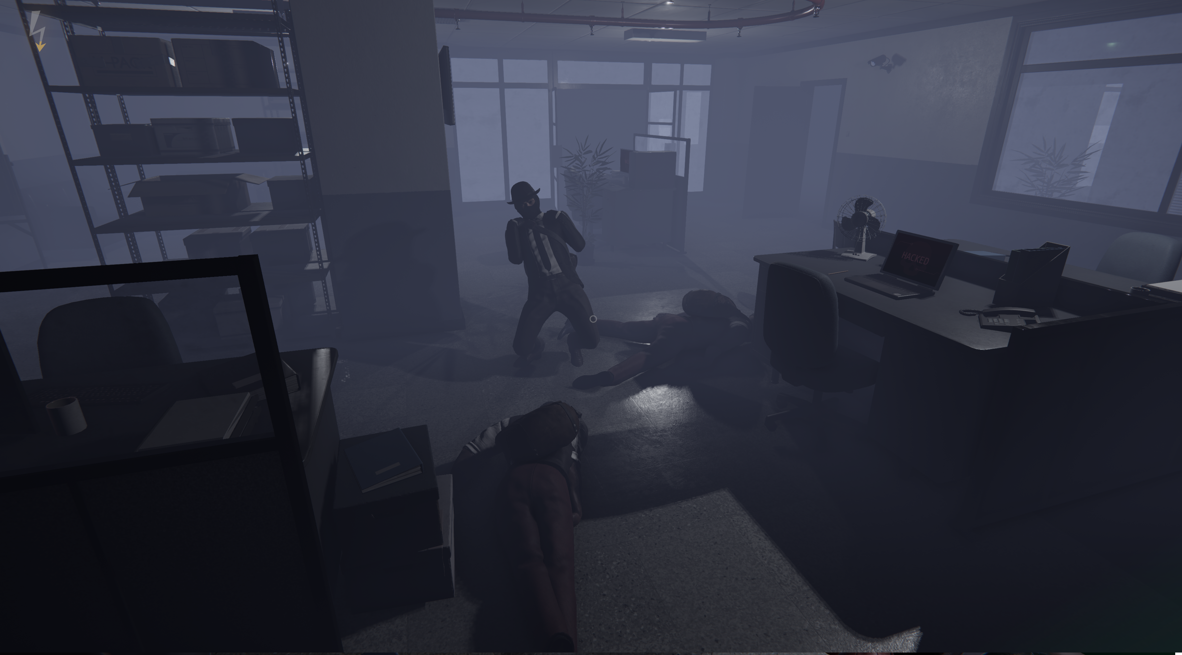 Já nos mapas em si, os objetivos são criados de forma aleatória a cada vez que você inicia uma missão, mas eles se resumem basicamente a invadir os computadores para roubar informações, que são divididas em três tipos de arquivos com um número mínimo de megabits em cada um deles para ser baixado, pegar documentos físicos e itens específicos que são encontrados em gavetas e cofres, e tirar fotos de indícios de crimes que estão espalhados pelo mapa.