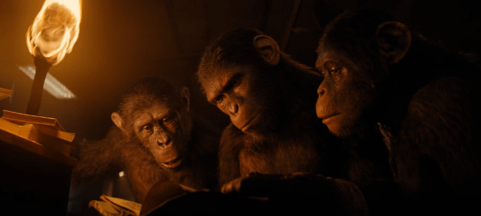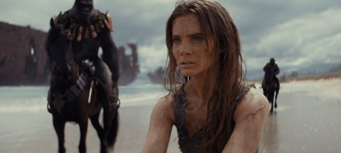Outro destaque que já é comum na franquia são os efeitos especiais. Infelizmente, não temos nenhum ator mestre na captura de movimentos como Andy Serkis. Mas é sempre impressionante ver um filme onde mais de 90% dos personagens são digitais feitos a partir dessa tecnologia. Noa é um protagonista carismático com uma jornada do herói bem clichê, mas eficaz. Além disso, sua interação com outros macacos e com a humana Mae (Freya Allan) geram momentos interessantes, principalmente no terceiro ato quando as relações entre humanos e macacos acabam ficando mais complexas.