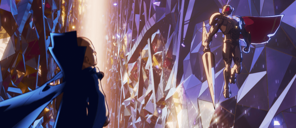 Para introduzir o novo universo, a animação consegue estabelecer uma ponte com o espectador através do ilustre Vigia (voz de Jeffrey Wright). O personagem apresenta as linhas temporais e nos leva a todos os pontos centrais das histórias em cada episódio. Assim, já no começo, a Marvel se destaca por trazer, de forma familiar, a onisciência de um personagem considerado misterioso e divino vindo dos quadrinhos.