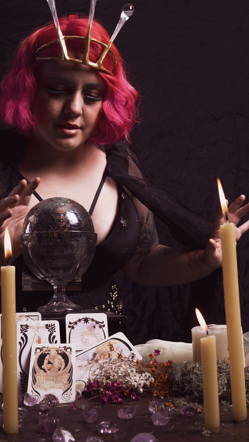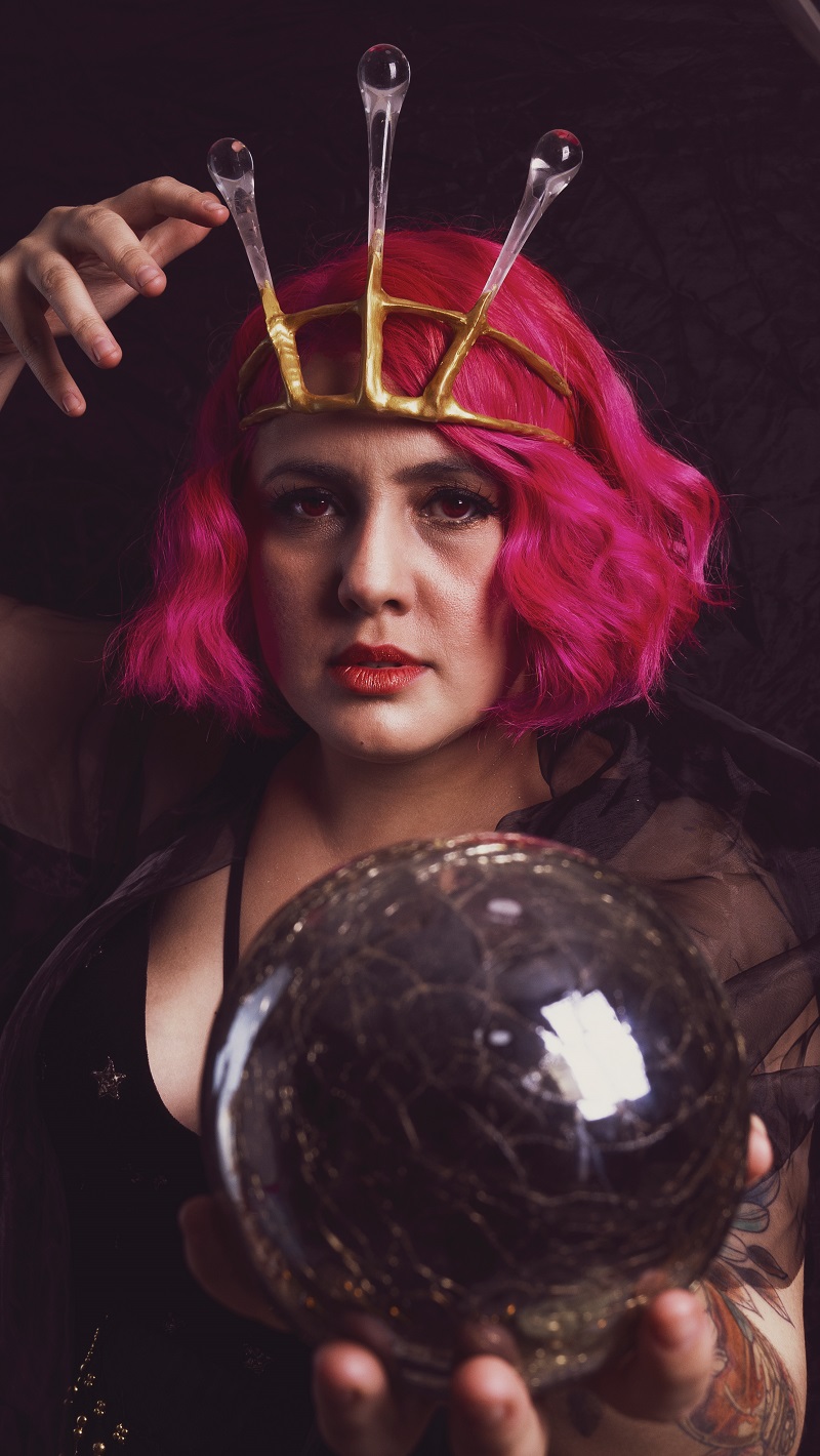 A visão interior tem um espaço especial no mundo mágico, sendo um dos dons mais difíceis de se dominar. A capacidade de prever e manusear os acontecimentos é inestimável! Uma bruxa capaz de tecer os fios do tempo e manter seu equilíbrio pode ser equiparada a uma deusa. Luana Lopes utiliza todo seu poder na administração dos eventos mágicos da loja Hocus Pocus e mantém tudo em ordem com o poderoso tilintar de seus dedos.