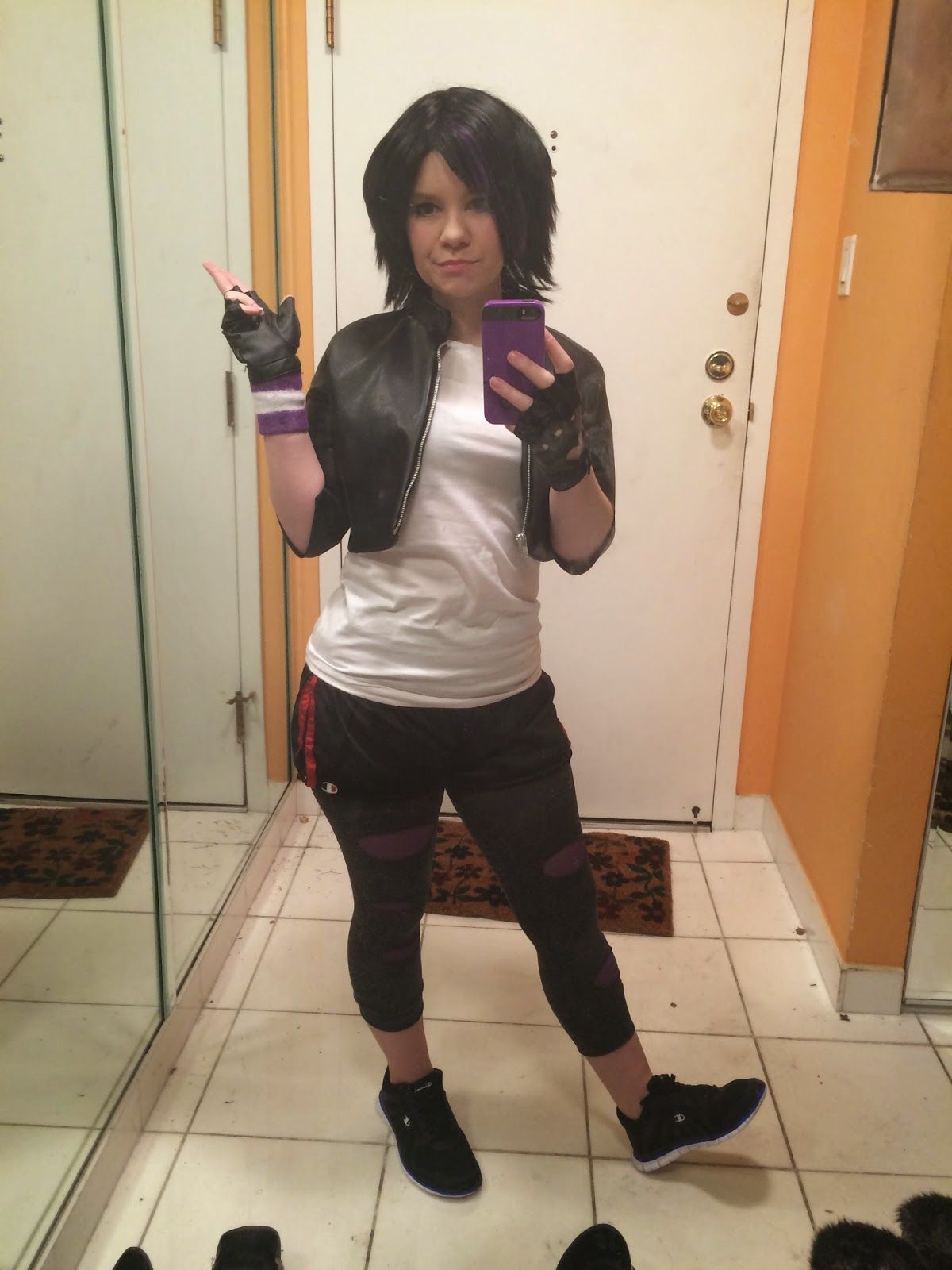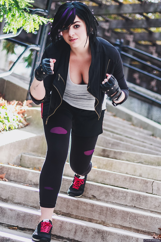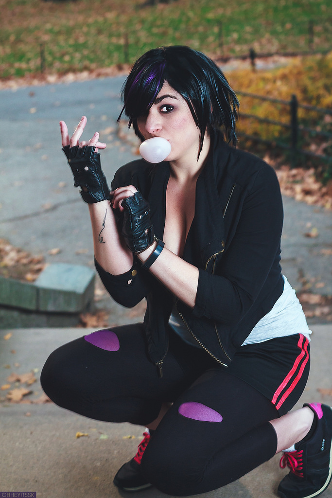 E para fechar a nossa listinha, temos a GoGo de BIg Hero 6. Nesse cosplay a única dificuldade que você pode encontrar é com a peruca. Mas caso você não encontre uma igual a dela, você pode comprar uma peruca preta chanel e customizar. Para as partes roxas você pode comprar mechas de cabelo sintético e prender na peruca.