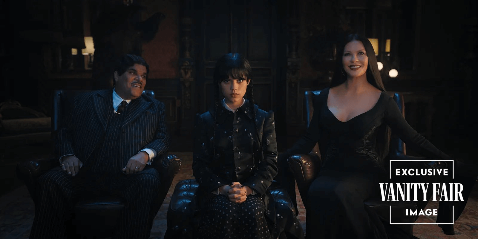 Catherine Zeta-Jones (Morticia Addams), Luis Guzmán (Gómez Addams) e Isaac Ordonez (Pugsley Addams) estampam a primeira imagem com a família reunida. Confira abaixo: