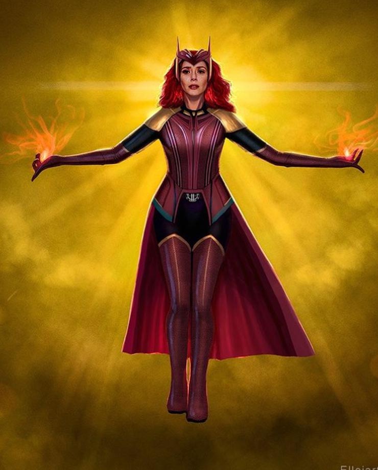 Falta apenas mais um episódio para o fim de WandaVision. Diante dos eventos que conferimos até o momento, tudo caminha para que Wanda finalmente se torne a Feiticeira Escarlate. Adiantando possíveis acontecimentos, o artista Nikolay Mochkin pegou a referência de um dos cartazes promocionais – que traz pedaços do uniforme da heroína –, fez uma junção com a silhueta de uma premonição da personagem e bang! Eis a Feiticeira Escarlate entre nós. Veja abaixo sua arte e as duas outras que serviram de base para a montagem: