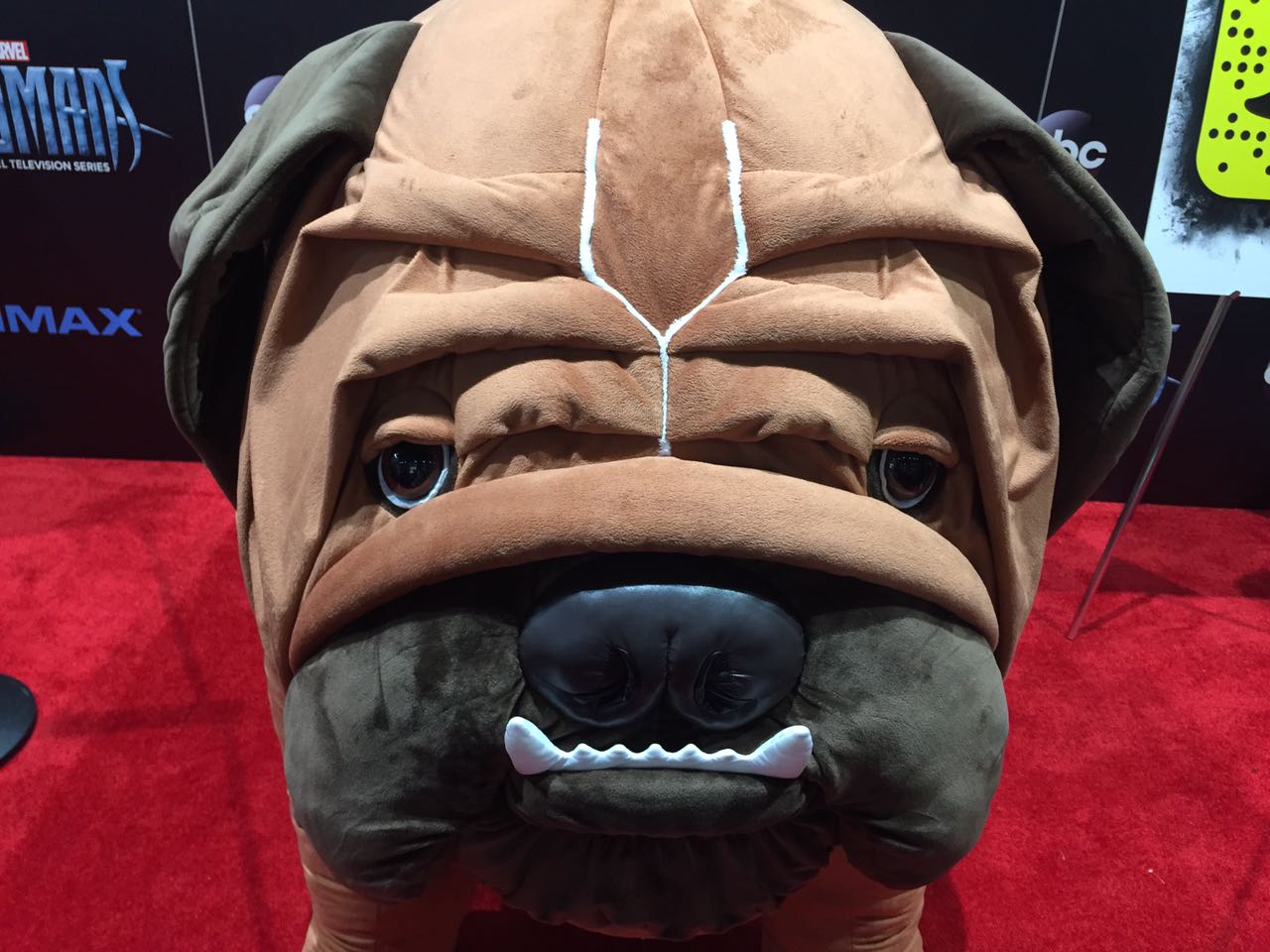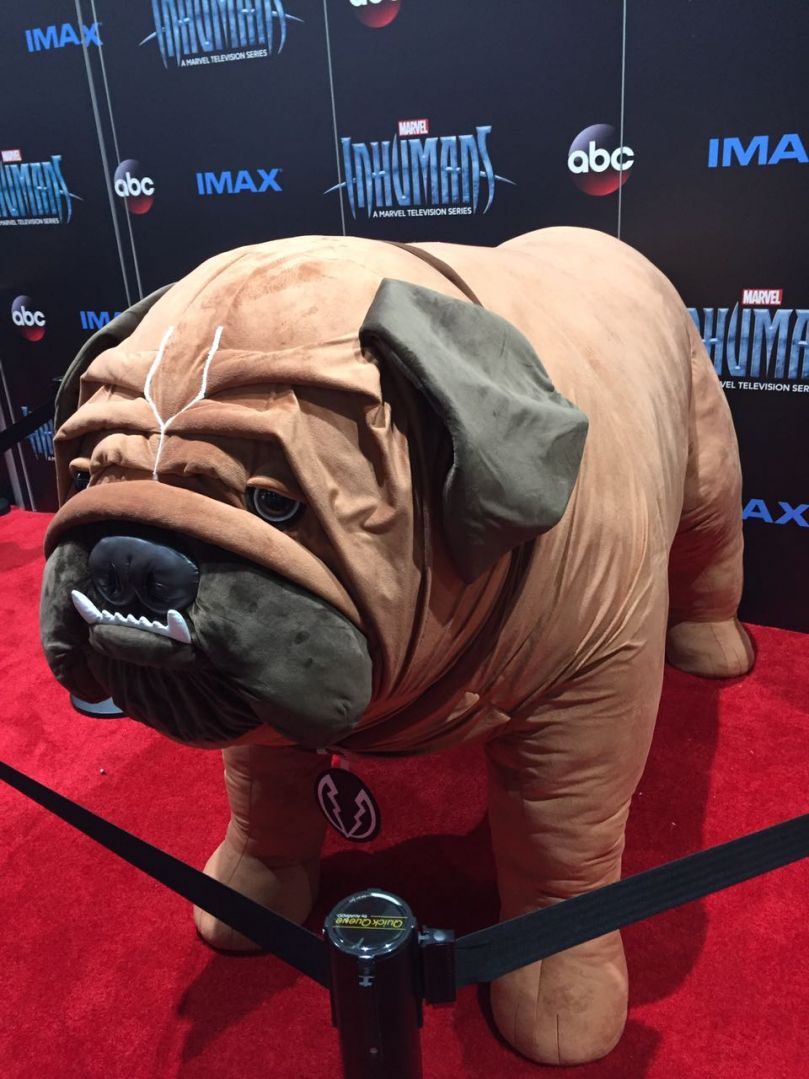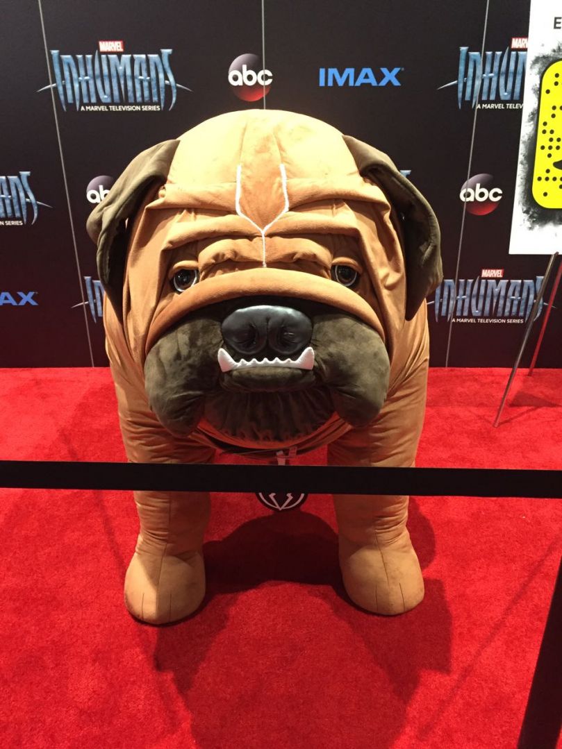 Ao longo dos quatro dias da San Diego Comic-Con 2017 o estande da Marvel deve revelar estátuas variadas de seus filmes, mas o destaque nesta noite de preview no pavilhão de convenções foi outro: uma versão de pelúcia do buldogue Dentinho dos Inumanos, que estará na série de TV. Veja: